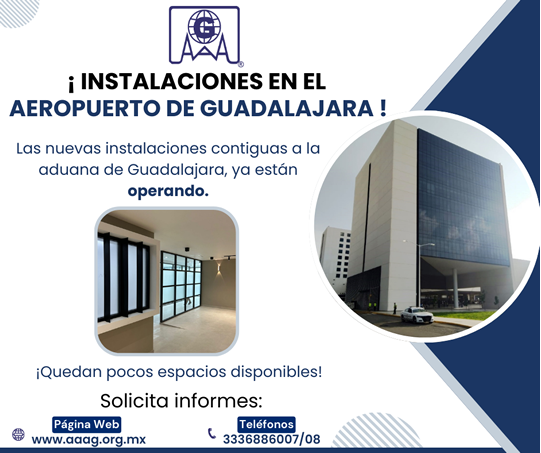 El Área Operativa de la Asociación de Agentes Aduanales de Guadalajara, ya se encuentra físicamente y en funciones en el Edificio B del Aeropuerto, Piso 1° Módulo 47