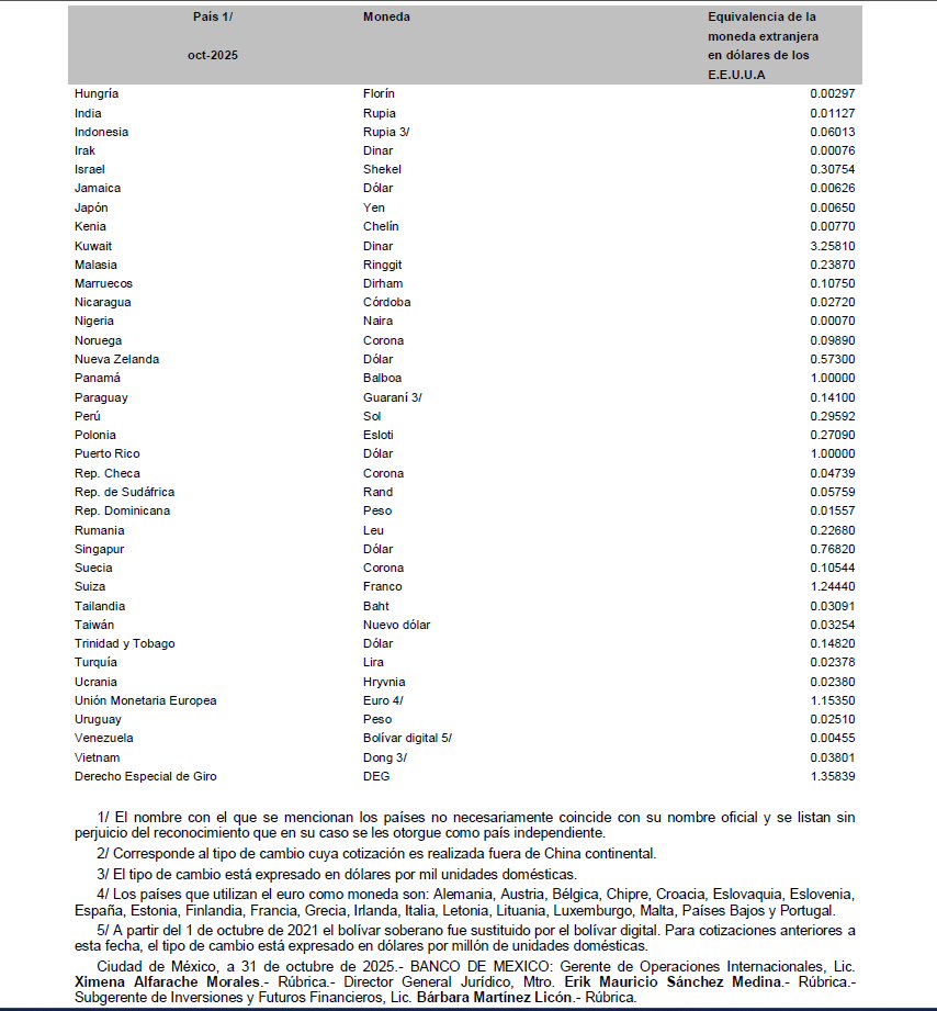 Tablas de equivalencias